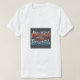 El diseño de la camiseta incluye la frase "América, la bella" en letras vibrantes y multicolor, ambientadas en un fondo de emblemáticos símbolos americanos. Los colores son audaces y llamativos, reflejando la diversidad y energía de la nación. El diseño es lúdico y enérgico, lo que lo convierte en una declaración divertida y patriótica.