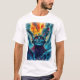 Una figura esquelética amenazante irradia energía nefasta, su siniestra sonrisa enmarcada por llamas que arden de un aparato parecido a una corona. Los vivos tonos de naranjas feroces y azules helados chocan contra un telón de fondo tormentoso, que captura una mezcla surrealista de caos y poder. Las cadenas se deslizan ominosamente de su armadura, simbolizando una lucha entre el confinamiento y la dominación. Esta obra de arte encarna la esencia de una fuerza oscura y de otro mundo que se eleva para dominar los cielos y la tierra.