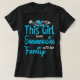 Este chica ama snowboard con su camiseta de la familia al aire libre