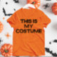 divertida camiseta de disfraces de naranja halloween con un simple texto de tipografía en negro.