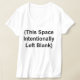 Una camiseta para mujeres con las palabras "Este espacio se ha dejado en blanco intencionalmente" entre paréntesis en la parte delantera.