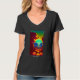 Camiseta con cuello en V de mujer, Negro, XL de adulto