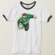 El color es muy bonito al natural, como la foto. El tejido es suave y de buena calidad. Sin defectos en el tintado, ni hilos sueltos o descosidos. Bien la impresión. Los bordes de las letras y el dibujo son nítidos, y el color contrasta muy bien con el de la camiseta.