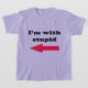 Un lema clásico de camisetas que se hizo famoso en las décadas de 1970 y 1980, I'm With Stupid ha llegado a representar irónicos chistes de camisetas con fecha. Esto es perfecto para fiestas retro o disfraces de lujo, así como un guiño conocido al pasado. El chiste, en funda, no sabes lo que estoy con los medios estúpidos, es que la flecha apunta a la persona que está a tu lado, así que, en efecto, los estás llamando estúpidos. Pobres.