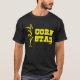 El color es muy bonito al natural, como la foto. El tejido es suave y de buena calidad. Sin defectos en el tintado, ni hilos sueltos o descosidos. Bien la impresión. Los bordes de las letras y el dibujo son nítidos, y el color contrasta muy bien con el de la camiseta.