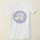 Luna sonriente en una nube suave rodeada de estrellas bailarinas en un cielo es un diseño perfecto para una camisa de sueño. El texto dice "CERRAR LOS OJOS Y DORMIR MIENTRAS LAS ESTRELLAS BAILAN ESTA NOCHE".