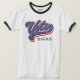 El color es muy bonito al natural, como la foto. El tejido es suave y de buena calidad. Sin defectos en el tintado, ni hilos sueltos o descosidos. Bien la impresión. Los bordes de las letras y el dibujo son nítidos, y el color contrasta muy bien con el de la camiseta.