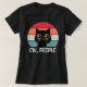 Diseño de estilo retro divertido y colorido con un bonito gato negro y decoración de fondo a rayas de colores y diseño de texto "Ew, People"