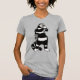 Tee de mujer de gato espeluznante con un dibujo de tinta que representa un extraño gatito rayado en blanco y negro con el cuello largo sosteniendo una máscara de cráneo. Parece que uno de sus guantes está fuera y su mano de esqueleto se muestra desde su manga. Me hace preguntarme si es mucho más una criatura espeluznante de lo que aparenta ser en Halloween.