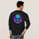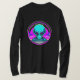 Arte psicodélico neón que representa un platillo alienígena y volador. Contenido generativo.