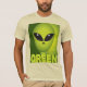 El color es muy bonito al natural, como la foto. El tejido es suave y de buena calidad. Sin defectos en el tintado, ni hilos sueltos o descosidos. Bien la impresión. Los bordes de las letras y el dibujo son nítidos, y el color contrasta muy bien con el de la camiseta.