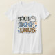 FabBOOlous - Fantasmas con la camiseta de Glam Un fantasma alegre flota sobre la palabra "FABÓLOO", donde las letras atrevidas mezclan el espíritu de Halloween con un toque elegante. El "BOO" azul aparece entre acentos negros y naranjas, rodeado de estrellas y puntos que brillan con energía festiva. Este diseño caprichoso celebra una temporada espeluznante con el asno, la dulzura y un guiño a lo fabuloso.