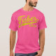 El color es muy bonito al natural, como la foto. El tejido es suave y de buena calidad. Sin defectos en el tintado, ni hilos sueltos o descosidos. Bien la impresión. Los bordes de las letras y el dibujo son nítidos, y el color contrasta muy bien con el de la camiseta.