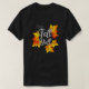 El color es muy bonito al natural, como la foto. El tejido es suave y de buena calidad. Sin defectos en el tintado, ni hilos sueltos o descosidos. Bien la impresión. Los bordes de las letras y el dibujo son nítidos, y el color contrasta muy bien con el de la camiseta.