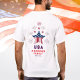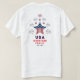 ¡Muestra tu orgullo patriótico con esta audaz camiseta roja y azul! Con una gran estrella de la bandera de Estados Unidos, fuegos artificiales rojos y azules en un arco, y la palabra de estilo grunge "LIBERTAD" encima de las palabras "Justicia, Paz, Igualdad". La parte posterior repite el diseño con "USA" y espacio para un nombre personalizado. Perfecto para el 4 de julio, Día Conmemorativo, Día de los Veteranos, desfiles, reuniones familiares, o simplemente mostrar tu orgullo estadounidense cualquier día del año. Destacado como una camisa de hombre, pero hace una poderosa declaración unisex para cualquiera que ame la libertad y el estilo. ¡Pida el suyo hoy a tiempo para las próximas vacaciones o evento especial!