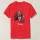 El color es muy bonito al natural, como la foto. El tejido es suave y de buena calidad. Sin defectos en el tintado, ni hilos sueltos o descosidos. Bien la impresión. Los bordes de las letras y el dibujo son nítidos, y el color contrasta muy bien con el de la camiseta.