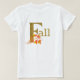 Bonito Caída / El diseño otoñal presenta la letra mayúscula "F" con relleno dorado marrón / marrón de yeso y una capa superficial de hojas otoño de color naranja acuarela, sobre fondo blanco
