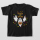 Prepárate para divertirte en Halloween con esta adorable camiseta con tres simpáticos fantasmas. Un fantasma sostiene un gato relleno de caramelos en una bolsa de farolillos, mientras que los otros dos llevan chupetes, haciendo que el truco o el trato sean una dulce aventura. Perfecto para una mirada espeluznante y encantadora de Halloween.