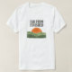 This retro-inspired t-shirt features a timeless sunset scene paired with a grounded, forward-looking message. A low burnt-orange sun sinks behind simplified rolling hills in muted forest green, rendered in a flat, vintage poster style with authentic print distress. Above it all, the phrase “FAR FROM FINISHED” stands tall in a bold, blocky serif with uneven ink density, evoking resilience, progress, and unfinished journeys. The softened edges and subtle ink fade give the design a worn-in character, while the clean white background keeps it crisp and versatile—perfect for those who appreciate classic design with a quietly determined edge.