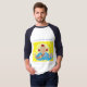 El color es muy bonito al natural, como la foto. El tejido es suave y de buena calidad. Sin defectos en el tintado, ni hilos sueltos o descosidos. Bien la impresión. Los bordes de las letras y el dibujo son nítidos, y el color contrasta muy bien con el de la camiseta.