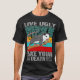 El color es muy bonito al natural, como la foto. El tejido es suave y de buena calidad. Sin defectos en el tintado, ni hilos sueltos o descosidos. Bien la impresión. Los bordes de las letras y el dibujo son nítidos, y el color contrasta muy bien con el de la camiseta.