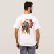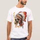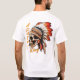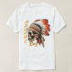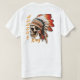 La camiseta tiene un diseño llamativo que llama la atención. En el centro hay un cráneo, intrincadamente adornado con una corona de plumas nativas norteamericanas, que exhibe una fusión de simbolismo tribal y majestuosidad real. Las plumas caen graciosamente alrededor del cráneo, simbolizando honor, coraje y tradición, las palabras están escritas en un tipo de letra que exuda autoridad y reverencia, agregando a la presencia dominante del diseño. En general, la camiseta sirve como un poderoso tributo a la rica herencia que celebra su resiliencia, espíritu y legado duradero.