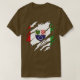 El color es muy bonito al natural, como la foto. El tejido es suave y de buena calidad. Sin defectos en el tintado, ni hilos sueltos o descosidos. Bien la impresión. Los bordes de las letras y el dibujo son nítidos, y el color contrasta muy bien con el de la camiseta.