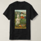 Ilustracion de época Victorian Feliz Pascua imagen de dos chicas en una caza de huevos en Pascua con un conejo blanco y coloridos huevos de Pascua teñidos en un nido escondiéndose en la hierba alta de un prado soleado. Los niños están persiguiendo al elusivo conejo de Pascua.