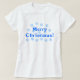 Separe la alegría del día de fiesta con esta camiseta nevosa de las Felices Navidad en texto azul y asperjada con los copos de nieve.