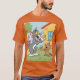 El color es muy bonito al natural, como la foto. El tejido es suave y de buena calidad. Sin defectos en el tintado, ni hilos sueltos o descosidos. Bien la impresión. Los bordes de las letras y el dibujo son nítidos, y el color contrasta muy bien con el de la camiseta.