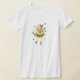 Camiseta feliz Chica de calabaza de Halloween. La camisa de personalizable muestra a una linda chica de Halloween con un divertido naranja y un puntito polka negro vestido con un gorra de brujas en la cabeza que lleva una pequeña escoba y calabaza en las manos con pequeños murciélagos a su alrededor.