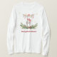Esta camisa bellamente ilustrada tiene un alce caprichoso que está adornado con medias de Navidad y adornos navideños. Está parado entre la vegetación invernal, las pineconas, las bayas rojas y las cintas. Los copos de nieve de Relieve metalizado dorado y suaves están dispersos por todas partes. Debajo dice "Feliz Chris-Moose".