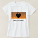 Esta camisa muestra una fotografía de un corazón negro y una puesta de sol naranja en el tema de Halloween