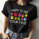 "Feliz de ver tu cara", divertido profesor de la escuela de regalo. Diseño de mano para niños arco iris para profesores de guardería, pre k, escuela.