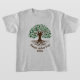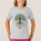Diseñar el Feliz Día de Arbor. Árbol con hojas verdes, tronco marrón, raíces marrones y, a juego de color con el lema: Feliz Día del Árbol