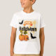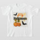 Feliz diseño de halloween con murciélagos y calabazas. Este diseño se ve realmente efectivo en esta camiseta para niños