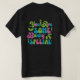 El color es muy bonito al natural, como la foto. El tejido es suave y de buena calidad. Sin defectos en el tintado, ni hilos sueltos o descosidos. Bien la impresión. Los bordes de las letras y el dibujo son nítidos, y el color contrasta muy bien con el de la camiseta.