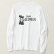Feliz Halloween con dos gatos negros que representan el "H" en la palabra Halloween.