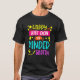 El color es muy bonito al natural, como la foto. El tejido es suave y de buena calidad. Sin defectos en el tintado, ni hilos sueltos o descosidos. Bien la impresión. Los bordes de las letras y el dibujo son nítidos, y el color contrasta muy bien con el de la camiseta.