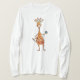 Esta es una original pintura de un medio mixto de una jirafa feliz y caprichosa tomando café.