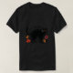 Un espeluznante diseño de gato negro perfecto para la temporada de otoño, con un felino salvaje rodeado de hojas de otoño y una luna llena en el fondo.