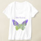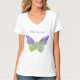Esta camiseta fibro con cuello de pico del guerrero del corte holgado se diseña para las mujeres con fibromyalgia. Ha impreso con una mariposa púrpura, el símbolo de la conciencia del fibromyalgia.