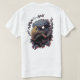 A striking digital illustration of a stylized eagle head with a sharp, cracked stone texture on its feathers. The bird features glowing white eyes, a powerful yellow beak, and sharp teeth, giving it a mythical, predatory appearance. It holds a lit cigar in its beak with wisps of smoke curling upward. The design is accented with vibrant red rim lighting and sharp, geometric shapes at the base
