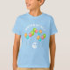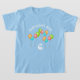 Colorido Fiesta Globos Nacimiento Niño Camiseta Azul. Agradable fiesta invitada a una camiseta de honor con cuatro globos de colores en rojo, verde, azul y naranja.