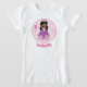 Esta adorable camiseta de cumpleaños de la princesa rosa muestra a una niña negra bonito usando un hermoso vestido de bola rosa. Personalice este lindo fiesta infantil con el nombre y edad de su niño afroamericano en una tipografía encantadora.