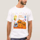 Un ilustracion colorido con calabazas adorables con diversas expresiones, como sonreír y reír, rodeado de confetti y globos de colores. El fondo muestra un cielo estrellado por la noche con una luna llena brillante, creando un ambiente alegre y festivo