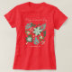Camiseta de Navidad con estilo con nuestra moderna camiseta navideña floral festiva. Cuenta con hermosas flores pintadas a mano en un esquema de color rojo y verde clásico tradicional. Personaliza la camiseta añadiendo tu nombre personalizado detalles. El fondo presenta un rojo. Obra de arte original de Caroline Bonne Müller