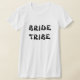 Una camiseta blanca clásica con tribu de novia en la parte delantera. Con texto personalizable en la parte trasera. Para cambiar el nombre o eliminar cualquiera de las partes, haga clic en el botón de personalizar.