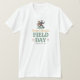 Esta camiseta blanca es ideal para una despedida de soltero o evento de "día de campo". La camiseta cuenta con una divertida ilustración de un hombre con traje corriendo con un trofeo, rompiendo la línea de meta. Debajo de la imagen están los detalles de su evento.