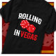 Divertido regalo de novedad de pareja para una escapada de fin de semana o unas vacaciones en Las Vegas. Un gran regalo para el recuerdo de Las Vegas para los amantes de los juegos de azar en el casino, de las máquinas tragaperras o de los fiestas en la franja o en el centro de Las Vegas, en Fremont St. Presenta la cotización de 'Rolling in Vegas' con dados rodados.